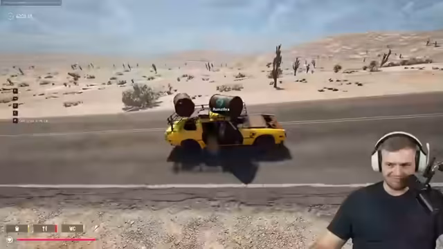 00:11:50Die Streamer starten in das Spiel und spawnen in einem Auto mit Raketenwerfer. Sie müssen das Fahrzeug mit Ressourcen wie Öl, Benzin und Erste-Hilfe-Sets ausrüsten. Dabei treten einige Anfangsprobleme auf, wie das versehentliche Trinken von Motoröl und das Füllen des Tanks. Das Spiel erweist sich als Survival-Titel, bei dem sie nicht nur Autofahren müssen, sondern auch essen und trinken müssen, um zu überleben.