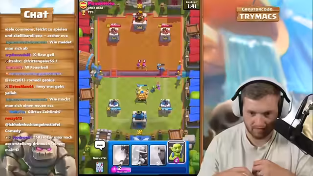 01:38:39Der Streamer beginnt mit dem Tutorial auf einem brandneuen Free2Play-Plus-Pass-Account. Es werden die anfänglichen Schritte gezeigt: das Leveln der Anfangskarten, das Verwenden des Creator-Codes und das schnelle Erreichen der ersten Arenen. Der Fokus liegt darauf, die günstigen Karten wie Kobolde effektiv zu nutzen und zu leveln, um eine solide Basis für spätere, komplexere Decks wie das geplante Golem-Deck zu schaffen.