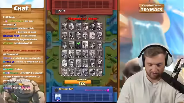 05:44:26Nach einigen Siegen und Niederlagen in der Grand Challenge wird der Wunsch nach einem eigenen Clans für das Projekt geäußert. Die Einrichtung wird beschrieben, wobei gezielt bestimmte Creator wie Big Spin und Julian Com eingeladen werden. Gleichzeitig wird die hohe Konkurrenz in der Challenge thematisiert, der Streamer fühlt sich von Smurfs, die das Spiel seit Jahren perfektioniert haben, im Nachteil und beschreibt die Gefühle der Frustration über die teuren Matches.
