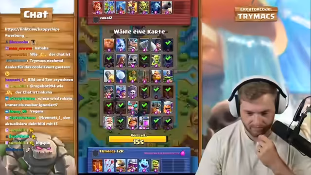 06:06:48Die endgültigen Ziele für das Free2Play-Projekt werden konkretisiert: Der Streamer strebt den Erreichen von 15.000 Trophäen an. Der Weg dorthin soll mit einem selbst entwickelten Deck realisiert werden, das effektiv Free-to-Play spielt und den wöchentlich geschenkten Evo-Karten optimal nutzt. Die Entwicklung vom Meta-Deck wird im Stream offen durchgespielt, indem verschiedene Kombinationen aus Golem, Elektro-Drache, Nado und zukünftigen Karten wie Holzfäller Evo als Potenzial besprochen werden.