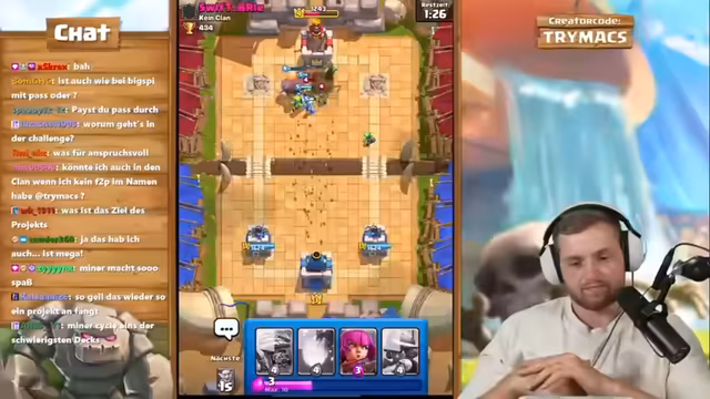 00:10:04Die nächste große Aktion wird ein neues Free-to-Play Projekt im Spiel Clash Royale sein. Es wird darüber diskutiert, ob man zusätzlich den kostenpflichtigen Pass nutzen soll, um mehr Content und Belohnungen zu erhalten. Der Streamer erwähnt neue Karten wie den Ofen und den E-Dragon, und es geht darum, ein komplett neues Deck zu testen, das er bisher nicht gespielt hat.