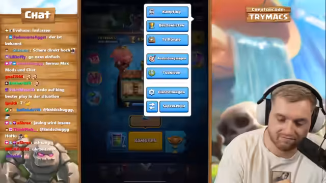 04:46:40Nach einer Phase intensiver strategischer Beratung wird das Ziel bekannt gegeben: mit einem Free-to-Play-Account der Stufe 14 den Rang von 11.500 Trophäen zu erreichen. Dieser Versuch wird jedoch nach einem misslungenen Spiel und einer kritischen Rüge des Coaches schnell verworfen. Es folgt eine Diskussion über das Champion-System, die Siegerraten und die Schwierigkeit, in hohen Ligen zu bestehen. Der Leistungsdruck wird deutlich spürbar, als auch der Coach anerkennt, dass manche Spiele nur aufgrund einer schlechten Startkarte verloren gehen.
