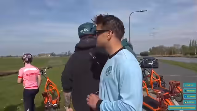04:48:32Es wird festgestellt, dass Nickys Akku leer war und Marc sie die letzten drei Kilometer anschieben musste. Es werden Helme gebracht, was das Sicherheitsgefühl deutlich erhöht. Die Natur in Holland wird gelobt und die Ruhe dort hervorgehoben. Es wird über den Konsum von Süßigkeiten während der Tour gesprochen und eine Süßigkeiten-Challenge erwähnt, an der aber nicht alle teilnehmen. Es wird festgestellt, dass die Laufbänder über Dynamo betriebene Lichter verfügen. Es wird über das Wechseln der Akkus gesprochen, was mit einem mitgelieferten Werkzeug möglich ist. Die Stimmung in der Gruppe wird als sehr gut beschrieben und es wird betont, wie viel Spaß alle zusammen haben. Es wird jedoch auch gewarnt, dass riskante Aktionen wie das Fahren ohne Hände zu einem vorzeitigen Ende der Tour führen könnten.