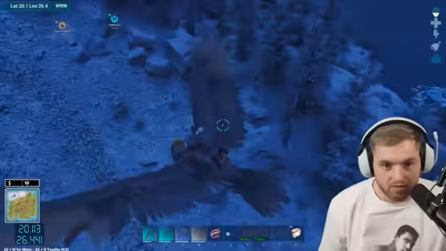 01:46:52Nach einem erneuten Angriff von Mantas und Quallen während des Taming eines weiteren Basilos discutiert der Streamer über Sauerstoffprobleme. Ein Delfin wird getötet, und nach Überwindung der Kälte wird der Basilo erfolgreich gefüttert. Später plant der Streamer, die Water Cave zu öffnen, ein Artefakt zu holen und einen Teolacoleo für das Looten der Höhle zu verwenden.