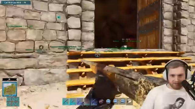 01:53:44Nachdem Dinos (Einorn, Schwein, Elefanten) die Basis zerstört haben, plant der Streamer eine massive Steinmauer als Schutz. Diskussionen über Ressourcenbedarf (ca. 50.000 Stein) und den Einsatz von Holzspikes vor der Mauer folgen. Willi schließt sich an, und es wird über die Verluste gesprochen: Max' Elefanten töteten viele Dinos, darunter das als 'Pegasus' bezeichnete Einhorn, das er lächerlich benannt findet.