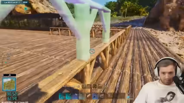 02:02:20Der Streamer plant eine Wasserbasis für die Zucht der Basilos, beginnend mit dem Bau von Fundamenten und Wänden. Er diskutiert den Einsatz von Stelzen und das Problem begrenzter Holzressourcen, obwohl über 100.000 Holz in der Basis vorhanden sein sollten. Später wird das Design der Wasserbasis angepasst, und es werden Stelzen für den Bau über Wasser verwendet, während über die Kollisionseinstellungen diskutiert wird.