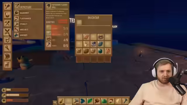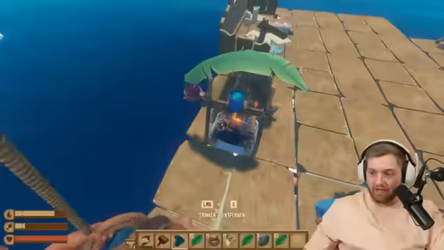 01:03:27Zu Beginn des Stream-Ausschnitts konzentrieren sich die Streamer darauf, ihre Ausrüstung zu verbessern und Ressourcen zu sammeln. Es geht darum, Plastik und Kunststoff zu beschaffen, um Seile herzustellen, die für den Bau von Ankern notwendig sind. Gleichzeitig wird das Thema Erweiterung des Floßes durch den Bau weiterer Grille angesprochen, um die Überlebensressourcen zu maximieren.