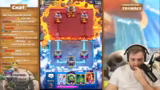 00:03:36Nach dem Erreichen des Status als Ultimate Champion wird mit einem starken Deck namens Double Minions gespielt. Der Streamer lobt das Deck für seine Wirksamkeit und erwähnt, dass er mit Dominic Play-by-Play coached wird, um die Spielstrategien zu verbessern. Nach anfänglichem Glück beim Öffnen von Truhen, die einen Champion enthalten, beginnt das Ranked-Spiel. Er erreicht schnell 1.800 Trophäen und kämpft sich vorwärts, wobei er seine All-Time-Bestmarke nur um zwei Trophäene verpasst.