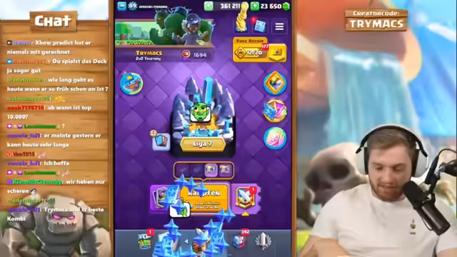 00:15:26Der Aufstieg in die Top 10.000 erweist sich als schwierig. Der Streamer muss gegen zahlreiche anspruchsvolle Gegner antreten, die starke Decks wie Evo Mortar, Giant Triple Musketeer und Hunter-Musketier-Kombinationen spielen. Viele Matchups sind extrem ungünstig und führen zu Verlusten. Trotzdem bleibt er motiviert und gibt nicht auf, wobei er betont, dass er diese Spiele outplayen muss, um zu gewinnen.