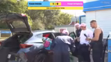 01:22:30Nach der Quizphase wechselt der Stream zu einem körperlichen Spiel. Die Teams erhalten jeweils eine Zahnbürste und müssen ohne Wasser eine Seite eines Autos innerhalb von zehn Minuten reinigen. Das Spiel ist von Taktik und Regelbruch geprägt, da sich die Teams gegenseitig beschuldigen, mit den Händen zu schummeln und Farbe auf die gegnerische Seite zu bringen. Die Jury um den Streamer bewertet am Ende die Sauberkeit der Flächen und entscheidet zugunsten von Team Max und Flash Royale, was den Stand auf 2:2 ausgleicht.