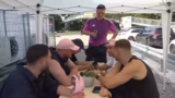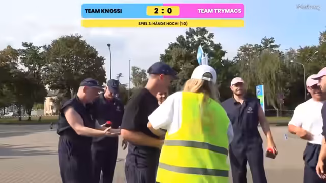03:24:34Ein weiteres Spiel, 'Leichtwerfen', beginnt mit dem Werfen von leichten Gegenständen wie Spielkarten und Keschern. Die Teilnehmer nutzen jedoch unkonventionelle Taktiken: sie spucken auf die Gegenstände, um sie schwerer und damit weiter werfen zu können. Dies führt zu einer ekelhaften Situation, als Trymacs' Team einen aufgespuckten Ballon als Geschoß verwendet und ihn weit fliegen lässt. Die andere beschwert sich, Trymacs' Team hat jedoch gewonnen, indem sie die Regeln geschickt umgangen haben.