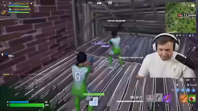 00:52:17Trymacs erzielt einen schnellen und erfolgreichen Kill, indem er eine Wand baut und sich dann im Sprung zu seinem Gegner edited. Er äußert seine Freude darüber, dass er nicht mehr wie ein unerfahrener Spieler spielt. Sie diskutieren über die Sniper-Schüsse und die Schwierigkeit, Gegner zu treffen. Trymacs benötigt Healing und sein Teampartner versorgt ihn mit Medis. Sie passen ihre Strategie an und beschließen, Bomben zu verwenden, um Gegner aus ihren Verstecken zu treiben. Trymacs ärgert sich über einen Gegner, der durch den Delay nach dem Auslösen einer Falle unverwundbar ist. Sie erreichen den zweiten Platz und analysieren ihre Leistung. Trymacs fragt nach den Stream-Settings und sein Teampartner gibt ihm technische Ratschläge. Sie diskutieren über konstante Bitrate und die Auswirkungen auf die Aufnahmequalität.