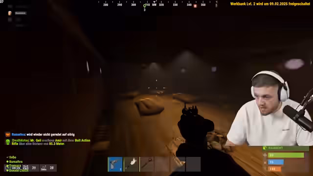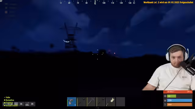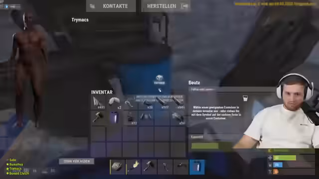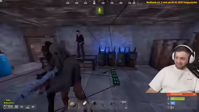 02:38:15Im Stream wird intensiv über Ressourcen wie Holz, Stein und Scrap gesprochen. Der Streamer handelt mit anderen Spielern, um benötigte Materialien zu erlangen, und diskutiert die Effizienz von Farm-Methoden wie dem Einsatz eines Jackhammers. Es kommt zu einem spielerischen Schusswechsel mit Tapsi, der als Missclick getarnt wird, und zu einem internen Teamkonflikt, bei dem Chef Strobel vorgeworfen wird, nicht genug zum Aufbau der Basis beizutragen, stattdessen aber Ressourcen zu verbrauchen.