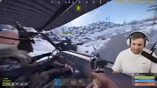 01:34:17Trymacs lässt seinen Bruder in die Wohnung und craftet währenddessen ein Level-Up. Er kauft Wände mit einem Skin, der die Hitbox verändert, was als Pay2Win angesehen wird. Er spricht über trockene Lippen und den bevorstehenden Österreich-Urlaub. Max tritt dem Stream bei und berichtet von schlechten Erfahrungen, da er immer sofort getötet wurde. Trymacs und sein Team schenken Max Waffen, darunter eine AK und eine Schrotflinte. Monte und Philo besuchen die Basis und schenken Trymacs eine MP5 und eine SKS, beides Tier-3-Waffen. Er tauscht sich mit seinem Team über die neuen Waffen und die Basenverteidigung aus. Er erklärt, dass er nicht im RP-Modus ist, sondern einfach mit Freunden spielt. Er wird aus dem Team-Together geworfen und wieder eingeladen. Er diskutiert über die bunten Türen in der Basis und die Notwendigkeit einer sicheren Basis.