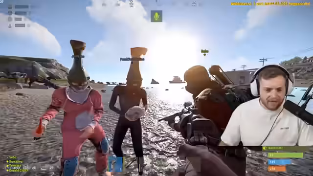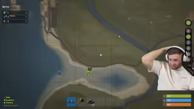 04:05:25Die Gruppe diskutiert über den Helikopterangriff und die Schuldfrage. Es wird kritisiert, dass die anderen wussten, dass der Helikopter früher kommt, aber Max nicht gewarnt haben. Max selbst gibt zu, einen Stein im Inventar gehabt zu haben, was den Angriff möglicherweise ausgelöst hat. Trotz des Rückschlags will die Gruppe weitermachen und Max beim Wiederaufbau helfen. Es wird überlegt, zum Fischerdorf zu gehen und Taucherflaschen zu kaufen oder zu scrappen. Max soll seine Leiche looten gehen, falls sich dort noch wertvolle Gegenstände befinden. Die Gruppe diskutiert über die Platzierung der Raffinerie und die Gefahren beim Spawnen in der Nähe des Helikopters. Es wird beschlossen, dass Strobe Max' Leiche finden soll, bevor sie loslegen. Max findet seine Leiche und die Gruppe plant, Ausrüstung zu besorgen. Die Gruppe ist motiviert, den Verlust auszugleichen und die Basis wieder aufzubauen.
