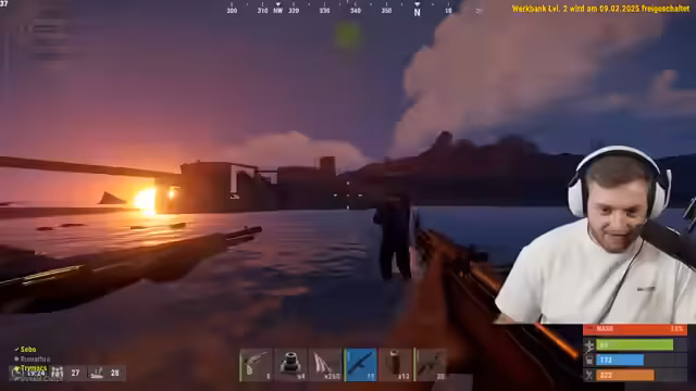 07:53:03Trymacs und sein Team geraten in einen heftigen Angriff, bei dem ihre Basis von zahlreichen Gegnern mit Miniguns und Flammenwerfern gestürmt wird. Während des Angriffs wird Trymacs getötet und verliert seine Waffen, was die Situation zusätzlich erschwert. Ein Teammitglied wird beschuldigt, während des Kampfes ein Zielfernrohr für einen anderen Spieler geholt zu haben, anstatt sich auf die Verteidigung zu konzentrieren. Trotz der widrigen Umstände versuchen sie, sich zu wehren und einen Ausweg zu finden, indem sie ein Boot zur Flucht nutzen wollen. Die Situation eskaliert, als sie feststellen, dass sie in ihrem Versteck gefangen sind und von einer Übermacht belagert werden, was zu weiteren Verlusten und Frustration führt. Der Versuch, mit einem Boot zu entkommen, scheitert zunächst, da die Gegner das Boot blockieren und die Spieler immer wieder getötet werden. Schließlich gelingt es einem Spieler, das Boot zu sichern und zu fliehen, während die anderen zurückbleiben und versuchen, ihre Ausrüstung zu retten.