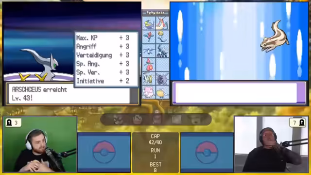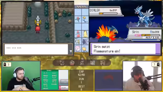 00:08:09Das Spielgehschritt liegt bei 28 Stunden In-Game-Zeit. Das Team befindet sich nun in der Siegesstraße, dem vorletzten Bereich vor der Pokémon-Liga. Es wird eine strategische Entscheidung getroffen, die ersten beiden Trainerkämpfe in der Top 4 nur mit fünf Pokémon zu bestreiten, um die legendären Pokémon Arctos und Dialga für die entscheidenden Kämpfe aufzusparen. Der Streamer erwähnt auch zukünftige geplante Events wie Trio Soulink und 2-gegen-2-Streams.