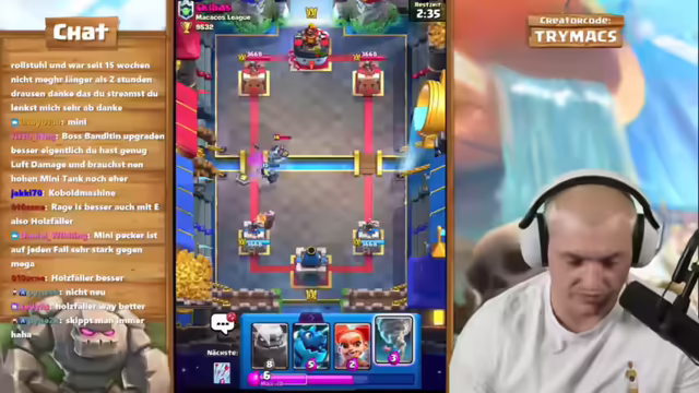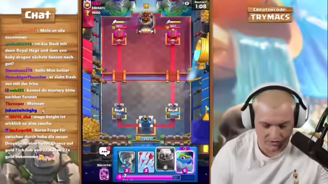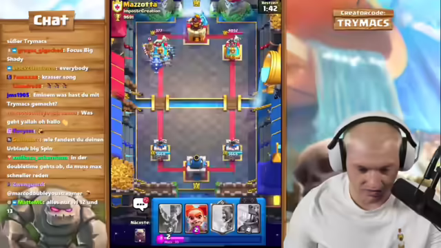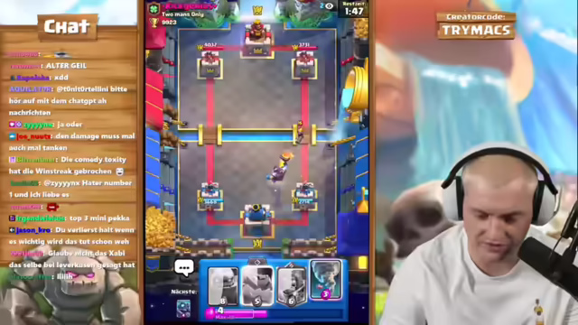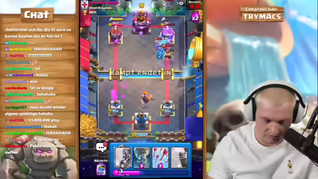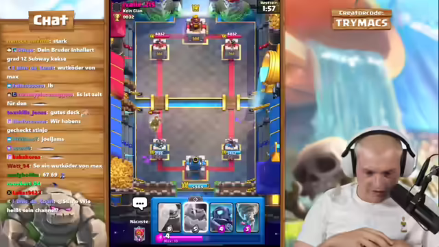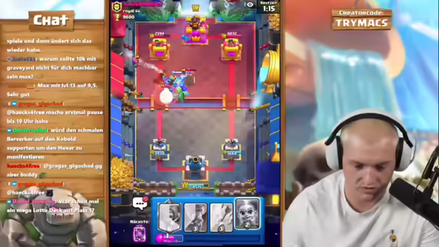 03:14:33Der Streamer freut sich über eine Serie von Siegen und die damit verbundenen Belohnungen. Er analysiert die Stärken und Schwächen seines Decks, insbesondere im Hinblick auf den Ofen und den Elektro-Drachen. Er demonstriert, wie man den Ofen effektiv einsetzt, um gegnerische Einheiten zu kontern und das Spielfeld zu kontrollieren. Der Elektro-Drache wird als Schlüsselkarte gegen Pekka hervorgehoben, wobei die richtige Platzierung entscheidend ist. Der Streamer antizipiert gegnerische Spielzüge und passt seine Strategie entsprechend an, wobei er aufmerksam auf den Elixier-Haushalt achtet. Er erklärt, wie man den Golem einsetzt, um den Evo-Ofen zu schützen und gleichzeitig Druck auf den Gegner auszuüben. Die Bedeutung von Zaubern wie Pfeilen und Nado wird betont, um gegnerische Angriffe zu kontern und den eigenen Vorteil zu wahren. Er reflektiert über seine Spielweise und die Notwendigkeit, flexibel zu sein und sich an die jeweilige Situation anzupassen. Der Streamer demonstriert, wie man den King Tower aktiviert, um einen Vorteil zu erlangen, und wie man die Boss Banditin effektiv einsetzt, um gegnerische Angriffe abzuwehren. Er betont die Bedeutung des Elektro-Drachen, da viele Spieler dessen Fähigkeiten unterschätzen, was zu Fehlentscheidungen der Gegner führt.