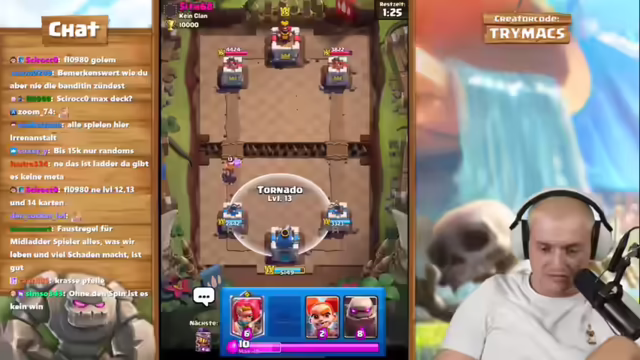04:20:10Der finale Abschnitt schildert das entscheidende Spiel um den Aufstieg in Clash Royale, geprägt von intensiver Taktik, Frustration und letztendlichem Triumph. Es werden detaillierte Spielzüge analysiert, von der Wahl der Starterhand bis hin zu den finalen Entscheidungen, die zum Sieg führen. Die Diskussionen zwischen den Spielern sind von hoher emotionaler Intensität, da der Druck, das Ziel zu erreichen, spürbar ist. Es wird deutlich, wie wichtig es ist, in kritischen Situationen einen kühlen Kopf zu bewahren und sich auf die strategischen Vorgaben zu konzentrieren. Der Abschnitt zeigt auch die Frustration über Fehlentscheidungen und unglückliche Spielverläufe, die jedoch durch den gemeinsamen Willen zum Sieg überwunden werden. Am Ende steht der ersehnte Erfolg: Der Aufstieg wird erreicht, und die Freude über den Triumph ist grenzenlos. Der Abschnitt verdeutlicht, dass der Weg zum Erfolg in Clash Royale von harter Arbeit, strategischem Denken und der Fähigkeit, auch in schwierigen Momenten zusammenzuhalten, geprägt ist. Der Streamer erreicht 10.000 Trophäen.