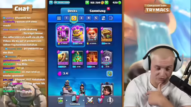 05:40:52Es wird festgestellt, dass man nur gegen Prinz, Holzfäller, Ritter, Giant Skeleton, Lightning und Inferno spielt. Es wird festgestellt, dass man gegen kein Deck gespielt hat, gegen das man spielen wollte. Es wird festgestellt, dass man einmal gegen das Golem Deck gespielt hat. Es wird überlegt, ob das Friedhof-Deck wirklich nicht gut ist. Es wird festgestellt, dass die Karten des Gegners 10% stärker sind. Es wird festgestellt, dass man gegen Giant Skeleton Rocket gespielt hat und beide Evos ausgeschaltet wurden. Es wird festgestellt, dass der Gegner Flawless gewonnen hat. Es wird festgestellt, dass der Gegner Evo-Holzfäller, Evo-Valkyre, Giant Skeleton und Rocket spielt. Es wird festgestellt, dass man 40.000 Gold bräuchte, um die Banditin zu verbessern. Es wird festgestellt, dass man Level 42 sein müsste, um die Karten auf 14 zu boosten. Es wird festgestellt, dass man am Sonntag genug Gold hat, um Level 42 zu kommen. Es wird festgestellt, dass man Grand Challenge mit neun Grave-Deck spielt. Es wird festgestellt, dass das Deck stark ist und man noch kein einziges Problem gegen Godam oder Goblin Junk hatte. Es wird festgestellt, dass das Deck auf Platz 1 der Welt ist. Es wird festgestellt, dass das Deck E-Volküre, Eismagier, Poison und Barbarrel enthält.