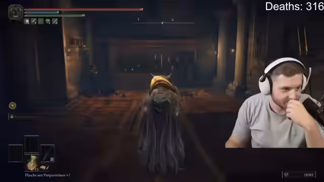 05:03:07Trymacs erkundet die neue Umgebung und merkt sich verschiedene Wege und Illusionen. Er aktiviert eine Herbeirufungsreserve und stellt fest, dass er mit schweren Angriffen Projektile abfeuern und normalen Schwertschaden verursachen kann. Er findet Sackgassen und sucht nach Hebeln oder Illusionen, um weiterzukommen. Er stirbt unerwartet und sucht nach einer Gnade, um sich auszuruhen. Er findet Dunkelschmiedestein und kämpft gegen weitere Gegner. Er stellt fest, dass er im Nahkampf mehr Schaden verursacht und verschiedene Effekte kombinieren kann. Er springt in einen neuen Bereich und kämpft mit begrenzten Tränken gegen einen Bossfight-ähnlichen Gegner. Er stirbt und verliert Runen, was ihn frustriert. Er versucht, aggressiver zu spielen, um Tränke zu sparen, und entdeckt einen Hebel hinter einer Statue. Er kämpft gegen weitere Gegner und sucht weiterhin nach einer Gnade.