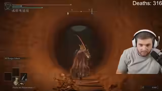 06:06:41Trymacs macht einen letzten Ausflug mit der Mondklinge, um noch ein bisschen Geld zu verdienen. Er stellt fest, dass er wegen des Helms Fat Roll macht. Er ist sich nicht sicher, wo er lang muss und läuft im Kreis. Er findet einen neuen Weg, wird aber von Gegnern überrascht. Er tauscht Schwerter und verliert seine Runen. Er läuft in der Kanalisation im Kreis und findet keinen Ausgang. Er hat Pest und verliert sein ganzes Geld. Er zieht seine Runen ab und sprintet durch, in der Hoffnung, eine Gnade zu finden. Er findet eine neue Asche und kommt weiter runter als vorher. Er springt runter und stirbt, weil da doch noch eine Hitbox war.
