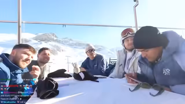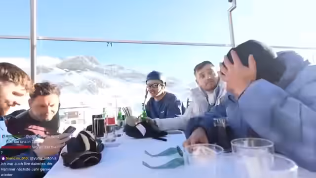 03:08:05Nach mehreren Stunden Skifahren beschließt die Gruppe, eine Mittagspause einzulegen. Es kommt zu einer Enttäuschung, als sie im Restaurant feststellen, dass das Essen ausverkauft ist und sie trotzdem noch mit einem VIP-Tisch gerechnet hatten. Die Gruppe diskutiert verschiedene Optionen für das Abendessen, von Pizza bis zu Schnitzel. Adi zeigt sich frustriert über die Situation, bleibt aber humorvoll und verspricht, die Gruppe am nächsten Tag pünktlich um 10 Uhr wieder zum Stream zu bringen.