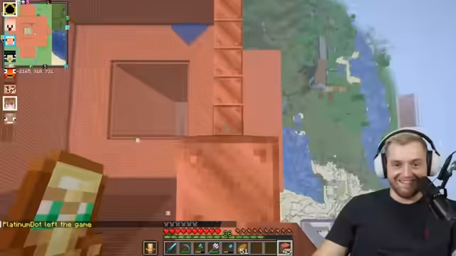 00:28:41Der Bau schreitet voran, wobei der Streamer und sein Team auf unvorhergesehene Probleme stoßen, wie das Fehlen von Blöcken an der kritischen Stelle des Kopfes. Neben dem Hauptprojekt schlägt der Streamer spontane Events vor, wie ein Goldfarmen-Contest oder die Planung für eine zukünftige Creeper-Farm im Golem. Es wird über verschiedene spätere Projekte gesprochen, von Clash Royale Content bis hin zur Reiseplanung für die Kings League.