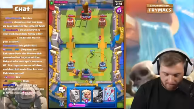 02:46:36In einem Spiel gegen ein Schweinereiter- und Ballon-Deck gelingt es dem Streamer, den Ballon mit seinem Evo Baby Dragon effektiv zu kontern, selbst wenn der Ballon zwei Level höher ist. Er beschreibt den Konter als extrem geil und vom allerfeinsten. Bei einem weiteren Sieg gegen ein Drill-Koboldfass-Deck stellt er fest, dass es ohne die Geisterkaiserin schwierig ist, genügend Schaden am Boden zu verursachen. Er ist begeistert vom Evo Baby Dragon und dessen Synergie mit dem Ofen.