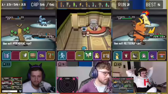 20:57:59Nach 40 Stunden Spielzeit äußert sich die Frustration über den bisherigen Spielverlauf, betont aber gleichzeitig den Willen, das Spiel bestmöglich zu Ende zu bringen. Trotz der Enttäuschung soll gemeinsam weitergespielt werden. Es wird die hohe Zuschauerzahl von 1,2 Millionen erwähnt, die den Content genossen haben. Die Strategie für den bevorstehenden Kampf wird besprochen, wobei die Schwächen des Gegners analysiert werden. Ein riskantes Manöver mit einem Wasser-Pokémon scheitert, was zu weiteren Verlusten führt. Es folgt eine Diskussion über die verbleibenden Optionen und die Fähigkeiten der verbleibenden Pokémon, insbesondere Ketaking, um den Kampf noch zu wenden. Die Entscheidung fällt auf einen Gigastoß, trotz der Risiken durch mögliche Gesteinsattacken des Gegners. Ein kritischer Treffer auf Keta King führt zum Verlust des Pokémon. Die Gruppe steht vor der Herausforderung, mit den verbleibenden Ressourcen den Kampf gegen Schiff Schrobel zu bestreiten, wobei verschiedene Strategien und mögliche Attacken diskutiert werden. Das Team muss sich auf riskante Manöver verlassen und hoffen, dass der Gegner keine Flugattacken einsetzt.