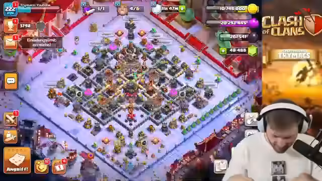 03:54:24Trymacs tätigt einen umfangreichen In-App-Kauf in Clash of Clans für etwa 450 Euro, inklusive Goldpass, Ereignispass, Skins und Gems. Er aktiviert den Goldpass und den Ereignispass, kritisiert aber den 'Pain', also das zusätzliche Bezahlen, um schneller voranzukommen, obwohl der Pass auch ohne tägliches Spielen leicht zu schaffen ist. Nach dem Kauf inspiziert er die neuen Level und Gebäude-Designs, wie den Tesla Turm Level 16, und wertet diese auf. Er nutzt Runen des Goldes, um Ressourcenlager aufzustocken und Gebäude wie den X-Bogen und den Minenwerfer zu verbessern. Trymacs entdeckt eine neue Defense, den Multi-Entwicklungsturm, eine Fusion aus Kanone und Bogenschützenturm, und wertet diesen ebenfalls auf. Er tauscht den Turm mit einem Magierturm, um ihn besser zu positionieren. Des Weiteren testet er die neue Belagerungsmaschine, die sich jedoch als schwach erweist. Er analysiert die neue Ausrüstung, das Schlangenarmband für den Barbarenkönig und die Metallhose für den Lakaienprinzen, kommt aber zu dem Schluss, dass diese nur bedingt nützlich sind. Abschließend werden Mauern mit Mauernringen aufgewertet und Ressourcen im Event-Shop gekauft. Er kauft Sternenerze und Glimmererze. Er beendet den Inferno-Turm mit einem Hammer für 34 Euro. Die neuen Tesla Türme sehen sehr gut aus. Die Base sieht extrem böse aus.