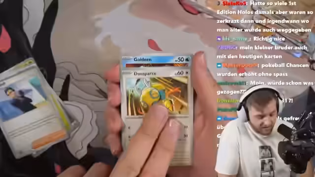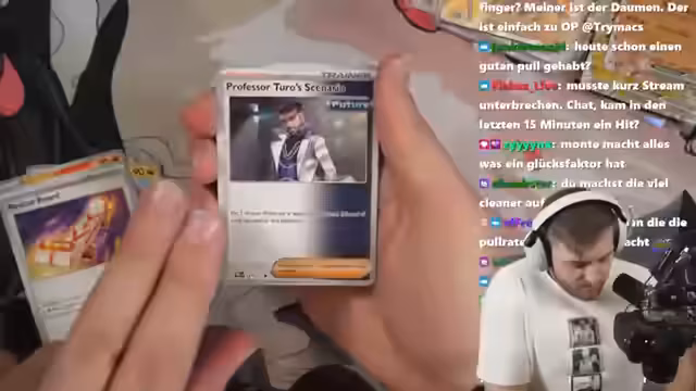 00:19:06Trymacs beginnt mit dem Öffnen der Booster und zeigt begeistert die ersten Karten. Er erklärt, dass er noch nie eine Karte verkauft hat und es ihm darum geht, wie selten und beliebt die Karte in der Pokémon-Community ist. Er hofft auf einen frühen Hit, idealerweise eine Karte mit Meisterball. Er zieht eine Evoli-Weiterentwicklung mit Pokéball, ist jedoch enttäuscht, da er diese bereits mehrfach gezogen hat. Er zeigt seine bisherigen Dubletten und betont, wie bitter es ist, viele gleiche Karten zu ziehen. Er zieht ein Liefain mit Pokéball und schätzt dessen Wert auf 25 Euro. Er zieht eine Holo-Karte, die er als Playstation 5 mit Eiffelturm bezeichnet. Er erklärt, woran man seltene und gute Karten erkennt: Pokéball oder Meisterball, alternatives Artwork oder Gold.