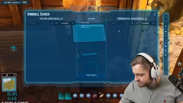 06:29:46Um die Zucht zu optimieren, demonstriert der Streamer die Nutzung von fortgeschrittenen Suchfiltern im Spiel. Durch Halten der E-Taste auf einem Terminal öffnet sich das Menü „Advanced Search“, wo man Geschlecht (männlich), Mutationsstatus (Equal or Greater) und spezifische Werte (z.B. Melee-Mutationen von 20+) einstellen kann. Dies ermöglicht es, gezielt Dinos mit gewünschten Eigenschaften auszuwählen, ohne manuell durchsuchen zu müssen. Ein Beispiel zeigt, wie nach einem Männchen mit 22 Mutationen gesucht wird, um die Zuchtlinie weiter zu verbessern und unnötige Dinos zu entfernen.