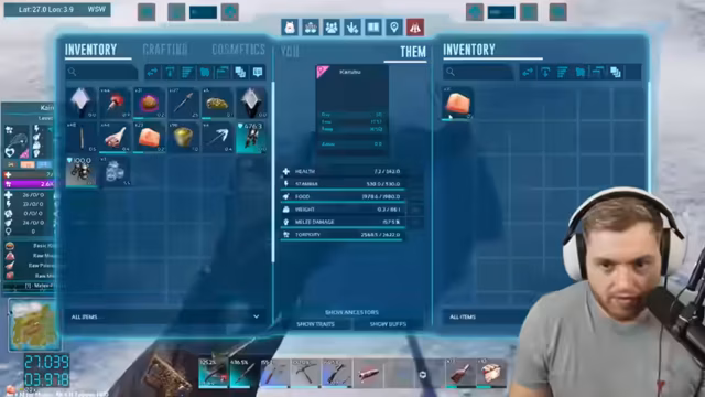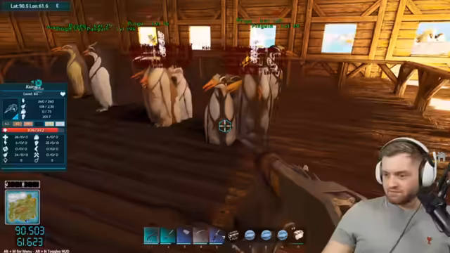 02:23:34In den frühen Minuten des Streams diskutiert das Team über die Heilung eines schwer verletzten Quetzals. Sie überlegen, wie sie den Dinosaurier heilen können, indem sie verschiedene Methoden wie das Füttern mit bestimmten Items oder das Aufwachen lassen diskutieren. Dabei wird festgestellt, dass der Quetzal sehr schwach ist und von Raptoren fast getötet wurde. Einige Vorschläge umfassen die Nutzung eines Daiodons (Schwein) zur Heilung oder das Testen des Force-Feedens. Es wird auch über die Möglichkeit gesprochen, den Quetzal lieber zu töten, um einen neuen Spawn zu ermöglichen, anstatt ihn in diesem Zustand zu behalten. Die Gruppe ist unsicher über den genauen Heilungsprozess und erwägt, den Quetzal aufwachen zu lassen und später zurückzukehren, um ihn zu heilen.