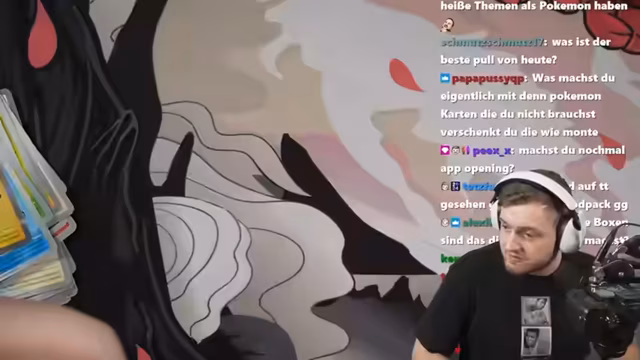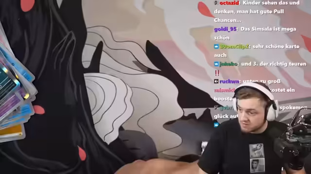 02:13:16Der Streamer beginnt mit dem Öffnen von Pokémon-Karten, wobei er besonders beeindruckt von den vielen Hits ist. In nur wenigen Boostern zieht er mehrere alternative Artworks, Illustration Rares und seltene Karten wie Erikas Invitation und eine Bisa-Floor-Full-Art. Er äußert seine Überraschung über die ungewöhnlich hohe Anzahl an wertvollen Karten in so kurzer Zeit und vergleicht die Pull-Rate mit früheren Openings.
