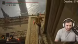 01:44:50Der Streamer erkundet eine的区域 mit vielen Gängen und unbesiegbaren Gegnern. Er kämpft gegen Scharlachvoller Bäume und erhält die Fäulnis-Stab, die Scharlachfäule verursacht. Er ist frustriert über das Gebiet, das als unbelohnt und dumm beschrieben wird. Er versucht, einen Weg zu finden, stößt aber auf Gegner, die zu stark sind und ihn töten, was ihn zu einer Flucht und zum Neustart vom letzten Gnadenpunkt zwingt. Er findet eine Leiter, die als schneller Weg dient und umgeht einen Teil des Kampfes.
