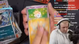 01:12:26Das Stream-Opening beginnt mit dem ersten Boosterpack der 'Surging Sparks'-Serie. Ein unerwartetes Ereignis tritt ein: Bereits im allerersten Booster wird eine alternative Artwork-Karte gezogen. Der Streamer ist zunächst baff und perplex, da dies extrem unwahrscheinlich ist. Es handelt sich um eine alternative Artwork-Karte des Trainers Drayton, die er jedoch als äußerst unbeliebt und unattraktiv beschreibt. Obwohl es sich um ein seltenes Exemplar handelt, schätzt er den Marktwert auf nur schmale 7,50 Euro, was bei einem Displaypreis von 2000 Euro für die gesamte Case eine sehr enttäuschende Bilanz darstellt.