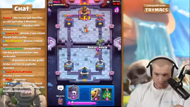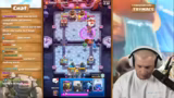 03:09:10Nach den Pokémon-Karten wechselt Trymacs zu Clash Royale. Er beginnt eine Free-to-Play-Challenge mit dem Ziel, alle 171 Champions zu gewinnen. Gleichzeitig zeigt er sein neues Deck, das auf Koboldhütte und Ritter aufgebaut ist. Er analysiert die aktuelle Meta, die nach großen Balance-Changes sehr offen ist. Viele verschiedene Decks wie Royal Giant, Miner Cycle und No Damage werden gespielt. Er versucht, sich mit seinem Coach Niki auf ein neues Deck mit Valkyrie anstelle des Ritters zu einigen, um in der Grand Challenge Erfolg zu haben.