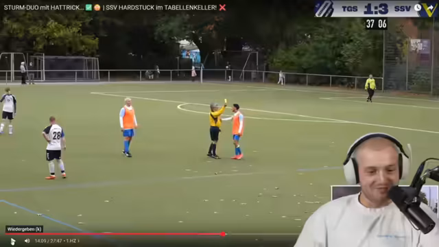 00:31:28Ein Höhepunkt des Streams ist ein Live-Bericht vom Fußballspiel seines Vereins Kult. Das Spiel wird durch eine Reisezeit von der Podcast-Tour unterbrochen. Nach anfänglicher Rückstand wird das Spiel 8-1 gewonnen. Der Streamer selbst schießt zwei Elfmeter, verpasst aber zwei Großchancen aus dem Spiel, was ihn frustriert. Spieler wie Jubin werden für ihre exzellente Leistung gelobt. Der Verein ist im Pokal noch sehr erfolgreich und hat sogar St. Pauli geschlagen.