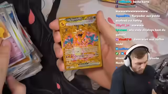 01:56:23Trymacs hat die zwei besten Karten und die fünftbeste Karte gezogen. Es fehlt nur noch ein Glurak. Er hat drei von vier Gluraks aus dem Set. Ein Zuschauer kann wegen seiner Eltern nicht subben, aber Trymacs betont, dass niemand subben muss und das Zuschauen schon geiler Support ist. Er bedankt sich für die Primes und betont, dass niemand das Gefühl haben soll, zappen zu müssen. Trymacs fragt nach der drittteuersten und viertteuersten Karte und stellt fest, dass er alles hat. Er wünscht sich noch das Taubsi für sein Set. Er hat Tauboga und Tauboss, aber das Taubsi fehlt noch. Er findet die Karten toll und würde sich sehr darüber freuen. Trymacs zieht weitere Primes und bedankt sich für den Support. Er zieht eine Trainer-Karte als alternatives Artwork und stellt fest, wie krass das Display wieder war. Er hat zwei Trainer-Alternativen gezogen. Trymacs zieht eine weitere Illustration Rare und kommt auf acht von 16. Er findet die Karten ultra cool und hat keine Duplikate.