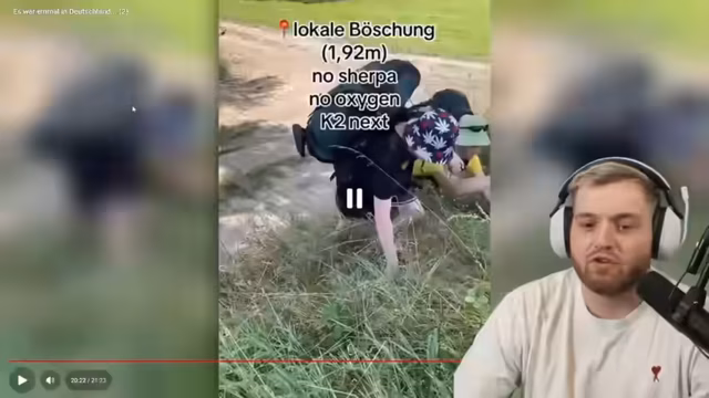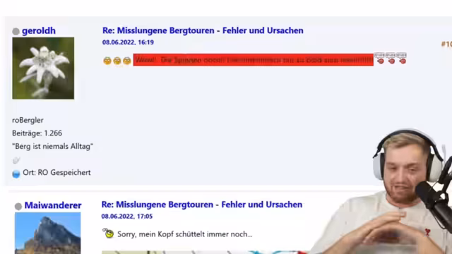 00:15:17Nachdem die Grundgeschichte des Videos verarbeitet wurde, vertieft sich der Stream in die Details und die öffentliche Reaktion auf den Vorfall. Er kritisiert, dass der Lehrer die Tour fahrlässig geplant hat und von den Rettungskosten von über 20.000 Euro durch den Steuerzahler spricht. Eine interessante Diskussion entsteht über den Urheber des Tourenkommentars, Andy84, der im Internet als 'Überalpin-Legende' bezeichnet wird. Der Streamer analysiert, wie ein einzelner, nicht verifizierter Online-Kommentar zu einer Katastrophe führen kann und wie die Ära des Internets es ermöglicht, dass sich Nutzer in Bereiche einmischen, die sie nicht beherrschen.