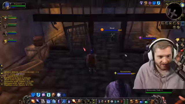 05:15:01Ein unerwarteter, aber humorvoller Vorfall ereignet sich, als der Streamer aus reiner Gewohnheit die Entfernen-Taste drückt, während er Addon-Einstellungen konfiguriert, was versehentlich ein Makro auslöst. Anschließend beginnt der Dungeon-Run. Die Gruppe beschreibt die Erfahrung als intensiv und aufregend, besonders als sie in eine schwierige Situation geraten und gerettet werden müssen. Die Atmosphäre ist geprägt von Adrenalinschüben und der Freude über das Überleben des gefährlichen Durchgangs.