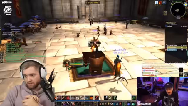 03:59:50In dem versuchen, einen Raum im Dungeon zu klären, kommt es zu massiver Desorientierung und gefährlichen Fehlentscheidungen. Der Streamer geht fälschlicherweise in den falschen Raum und zieht versehentlich den Boss und mehrere Gruppen auf sich. Anstatt geordnet zu agieren, rufen die Spieler unkoordiniert 'Raus', woraufhin jeder aus dem Raum rennt und durch den Kampfverlauf läuft. Dies führt zu einer chaotischen Situation, in der der Streamer als Tank die Agro nicht halten kann und das Team beinahe stirbt.