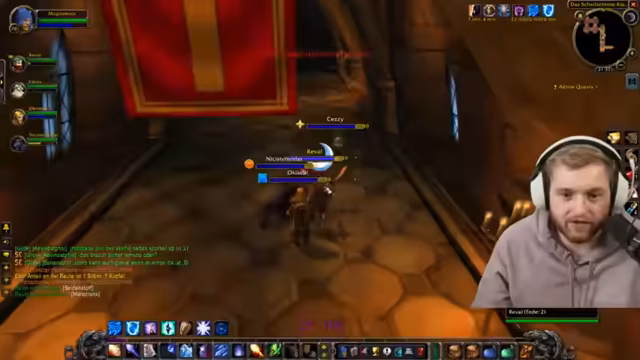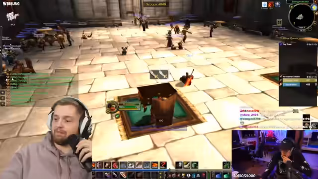 02:56:39Im Stream wird das Problem von festen Gruppen in World of Warcraft thematisiert, was das Finden von Gruppen für Dungeons erschwert. Der Streamer beschreibt, dass es eine ungeschriebene Regel zu geben scheint, dass man nicht mit den selben Leuten täglich Dungeons macht. Dies führt dazu, dass es sehr schwierig ist, eine Gruppe für Dungeons im Level-Spektrum von 40 zu finden, da die festen Gruppen oft schon gefahren sind und ihre Plätze einnehmen.