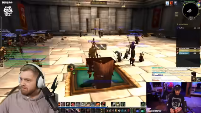 02:03:11Für 17 Uhr ist ein Dungeon-Lauf geplant, um pünktlich zum Gilden-Meeting zurückzusein. Der Streamer plant, kurz seine Medikamente zu holen, und stellt sicher, dass alle Gruppe einen Ruhestein setzen, um schnell zurückkehren zu können. Gleichzeitig gibt es eine Diskussion über die Gruppenzusammenstellung, insbesondere über die Rollen der Spieler, wobei klargestellt wird, dass es sich bei der aktuellen Konstellation um reine Damage-Dealer handelt. Auch die Idee, das Gilden-Meeting kürzer zu gestalten, wird thematisiert.
