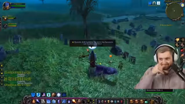 01:54:24Im Stream geht es hauptsächlich um das Erledigen von Quests im Dunkelwald. Der Streamer und seine Mitspieler sammeln Items für die Herstellung verbesserter Attrappen, insbesondere vier schweres Leder, das als sehr aufwändig beschrieben wird. Gleichzeitig werden Quests wie 'Behüter der Dunkelheit' bearbeitet, bei der Skelette und Ghoule getötet werden müssen. Der Streamer fühlt sich in der Rolle des 'Uber' und führt die Gruppe durch das Gebiet, während er zwischendurch sein Essen isst und über die notwendigen Materialien für den Fortschritt spricht.