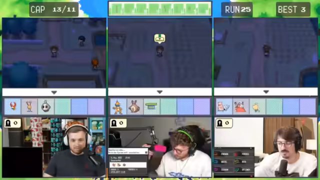 06:05:00Nach einem Neustart des Runs haben die Streamer deutlich mehr Erfolg. Es gelingt ihnen, mehrere starke Pokémon zu fangen, darunter das legendäre Palkia, Rotom und Evoli. Die Stimmung schlägt um und die Streamer sind begeistert von ihren zufälligen Begegnungen. Sie diskutieren über Spitznamen für die neuen Teammitglieder, wie zum Beispiel Ravioli für Evoli oder Borreliose für ein gefangenes Pokémon. Das neue Team erscheint vielversprechend und bringt die Streamer wieder in eine positive Stimmung.