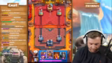 00:13:04Während des Spiels analysiert der Streamer Chef Strobels Spielzüge und deckt Schwächen in dessen Deck auf, insbesondere im Umgang mit der Win Condition. Er kritisiert Chef Strobel dafür, Musketieren in ein Gift-Feld zu picken. Gleichzeitig wächst seine Frustration über das Matchmaking-System. Er berichtet von einem Vorfall, bei dem er gestern Belohnungen verloren hat, und äußert sich verärgert über Gegner mit niedriger Trophäenanzahl, die das Spiel für ihn zur Herausforderung machen, da er gegen unerfahrene Spieler strategisch kaum etwas ausrichten kann.
