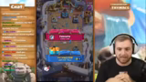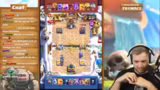 05:14:04Einige Matches verlaufen extrem knapp und gehen bis ins Detail. In einem dramatischem Spiel gelingt es dem Streamer, einen gegnerischen Angriff mit einem perfekt getimten Heilgeist zu überstehen und den Turm zu retten. Obwohl er später durch einen Royal Ghost und einen Baby Dragon einen klaren Turm schlägt, verliert er das Match durch einen Fehler bei der Platzierung eines Schweins gegen einen gegnerischen Rocket. Dies wird als bitter und frustrierend empfunden, da mehrere Fehler zu einer Niederlage führen, obwohl das Deck Potential gezeigt hat.