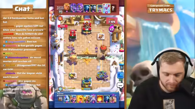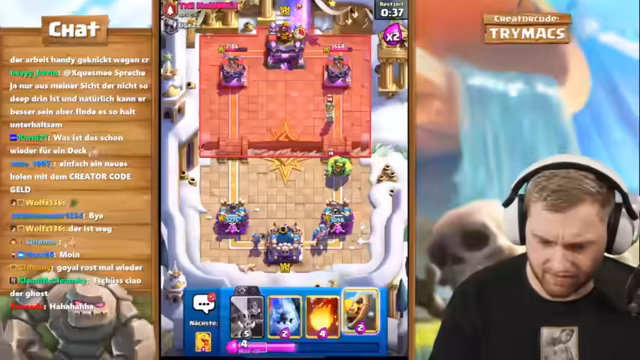 04:49:05Ein zentrales Thema ist die wiederholte Konfrontation mit einem als sehr nervig und stark empfundenen Meta-Deck, bestehend aus Hexe, Evo-Mega-Ritter und Mini-Pekka. Der Streamer beschreibt dieses Deck als "ekelhaft" und "verarschend", da es den Königsturm bedroht und schwer zu kontern ist. Trotz der Schwierigkeiten gelingt es durch genaues Kiten, richtige Split-Plays mit den Musketieren und den Einsatz von Heilgeist, die gegnerische Verteidigung zu überwinden und das Match mit 2:0 zu gewinnen, was die Stärke des genutzten Morten-Decks unterstreicht.